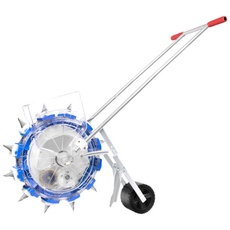 바퀴형 구조로 씨앗을 자동으로 심어 농작업 효율을 높여주는 파종기이며, 콩, 옥수수, 참깨 등 다양한 작물에 사용 가능하고 손쉬운 조작과 이동이 가능한 농업용 기계입니다.