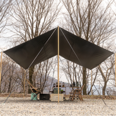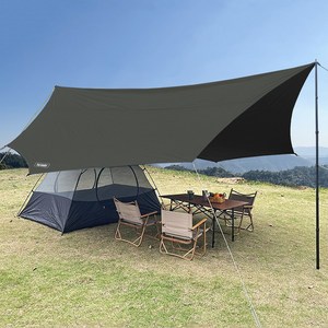 튼튼한 210D 원단에 블랙 코팅 처리로 강한 햇빛과 비를 차단하며, 넓은 대형 사이즈로 다양한 캠핑 환경에서 활용 가능한 타프입니다.