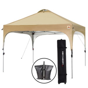 ABC 3x3 캐노피 천막 바람막이 방수 접이식 몽골 텐트 야외 그늘막 휴대가방 + 모래주머니 4P 포함, 베이지