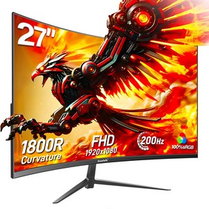 이 제품은 27인치 크기에 4K UHD 해상도를 지원하며 60Hz 기본 주사율과 200Hz FHD 모드를 제공하는 커브드 디자인 모니터로, 게임과 영상 감상에서 선명하고 몰입감 있는 화면을 제공합니다.