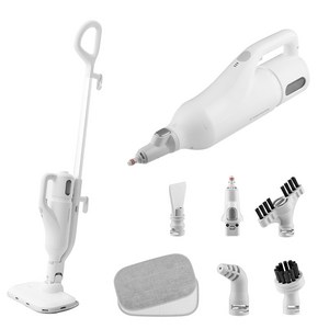 고온 스팀으로 바닥과 틈새를 위생적으로 청소할 수 있으며, 화이트 색상과 슬림한 디자인으로 편리하게 사용 가능한 스팀 청소기.