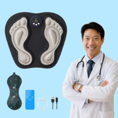 EMS 저주파로 발 근육을 자극해 피로와 긴장을 완화하며, 간편하게 착용해 집에서도 편리하게 발 마사지를 할 수 있는 제품임.