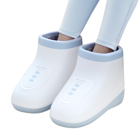 아킬레스건과 발목을 포함한 발 전체를 공기압과 진동으로 마사지해 피로를 완화하며, 무선과 리모컨으로 편리하게 조작 가능한 발 마사지기임.