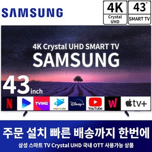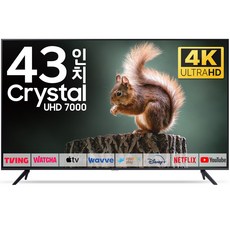 삼성 43인치 TV 크리스탈 UHD 4K LED 스마트 티비 43TU7000 미러링 유튜브 넷플릭스 티빙, 고객직접설치, 스탠드형