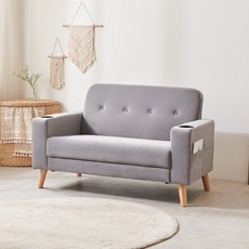 생활발수 기능이 적용된 패브릭 소재로 제작된 2인용 소파로, 홈바형 컵홀더가 있어 음료를 편리하게 놓을 수 있으며, 그레이 색상과 편안한 쿠션감으로 거실이나 휴게 공간에서 실용적으로 사용할 수 있습니다.