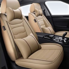 차량 내부에 맞춤 설치 가능한 4D 가죽 시트커버 세트로, 앞좌석과 뒷좌석 전체를 커버하며 내구성이 뛰어나고 고급스러운 베이지 색상으로 차량 인테리어를 업그레이드할 수 있는 제품입니다.