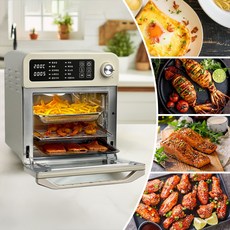 스테인레스 소재로 내구성이 뛰어나고 15L 대용량으로 다양한 음식을 한번에 조리할 수 있는 오븐형 에어프라이어로, 빠른 열순환으로 바삭하게 조리 가능하며 간편한 사용과 청소가 편리하다.