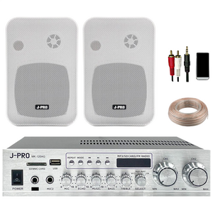 제이프로 240W 블루투스 매장용 카페 매장 업소용 벽걸이 미니 앰프 스피커 2개 세트+리모콘+PC선 1.5M+스피커케이블 20M, 화이트
