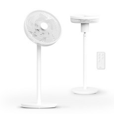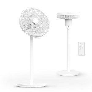 DC 모터를 적용해 저소음으로 작동하며, 입체 회전과 리모컨 조작이 가능해 넓은 공간을 균일하게 냉각할 수 있는 화이트 색상 선풍기이다.