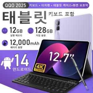 11인치 태블릿 12+128GB 4K OLED 태블릿pc T616 옥타코어 12000mAh 안드로이드 14 교육용 미디어감상용 키보드/터치펜 포함, Wi-Fi + 셀룰러, 128GB, 연보라색