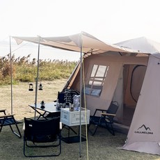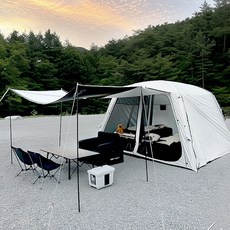 3~4인용 넉넉한 공간을 제공하며, 방수와 자외선 차단 기능이 적용되어 다양한 날씨 조건에서도 사용할 수 있는 거실형 리빙 쉘 텐트로, 오토 차박과 야외 캠핑에 적합하고 단일 돔 구조로 설치가 편리한 대형 캠핑 텐트입니다.