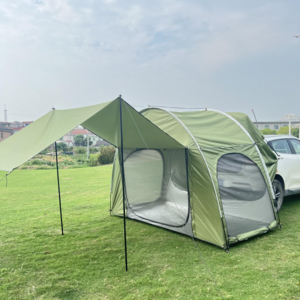 차박텐트 확장형 분리형 도킹쉘터 3x1.5x2.1m 방수 자립형 suv 차박 꼬리텐트 카 쉘터 천막과 창문 포함, 국방색, 6-8명