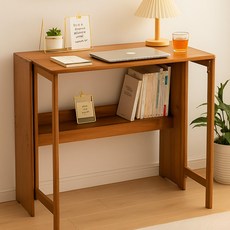 GOOD HOME 원목 접이식 학생용 가정용 컴퓨터 침실 소형 공간용 침대 옆 학습용 소형 책상 심플한 사무용 책상, 내츄럴우드