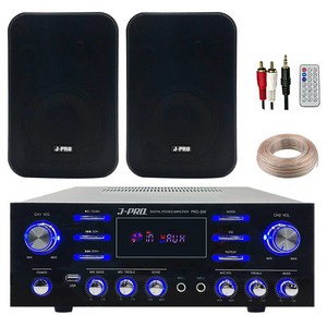 제이프로 300W 블루투스 매장용 카페 매장 업소용 벽걸이 미니 앰프 스피커 2개 세트+리모콘+PC선 1.5M+스피커케이블 20M, 블랙