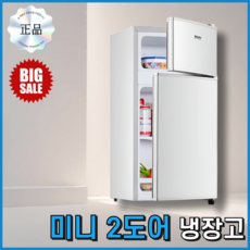 해당 제품은 90리터 용량의 소형 2문 냉장고로, 화이트 색상에 기사 설치가 포함되어 있고 당일 발송이 가능한 모델입니다.