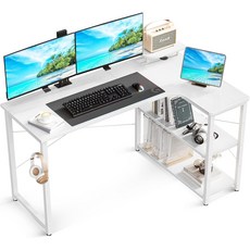 AODK 오른쪽 선반 코너형 컴퓨터 데스크 헤드셋 거치대 포함 책상 ㄱ자 1200 1400, 흰색, 1