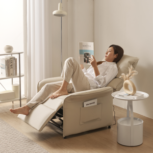 편안한 착석감과 전동 리클라이너 기능으로 전신 마사지를 제공하며 통기성 좋은 가죽 소재로 장시간 사용에도 쾌적함을 유지할 수 있는 1인용 안마의자.