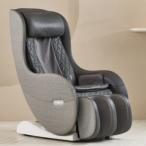 작은 공간에서도 사용 가능한 소형 안마의자로, 트윈 롤러 시스템과 리클라이너 기능을 갖춰 전신 마사지를 편안하게 즐길 수 있는 1인용 소파형 안마의자.