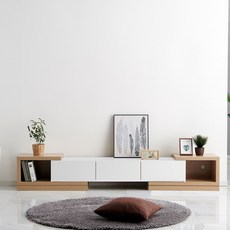 [지정일배송] 퍼니하우스 카라 익스텐션 확장형 TV다이 받침대 티비장 서랍형 거실장 1600 1800 2400, 오크화이트