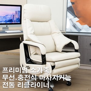 트리티드 대우받다 게이밍 사무용 무선 전동 마사지 리클라이너 중역의자 편안한 대표님의자, 1. 화이트 프리미엄 천연 소가죽 무선 전동