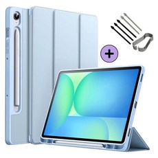 갤럭시탭 S10 FE / S10 FE 플러스 호환 S펜슬 수납 케이스 북커버 아이친구, 스카이블루