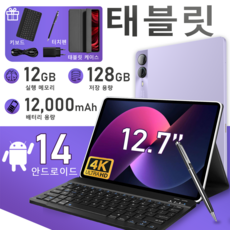 12.7인치 태블릿 12+128GB 4K OLED 태블릿pc T616 옥타코어 12000mAh 안드로이드 14 교육용 미디어감상용 키보드/터치펜 포함, Wi-Fi, 128GB, 연보라색