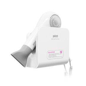 파테크 벽걸이 드라이기 1500W PW-8500 화이트는 욕실이나 세면대 옆 벽에 설치해 공간을 절약할 수 있는 고정형 드라이기로 1500W의 출력으로 머리를 빠르게 건조시키며 벽걸이 형태로 깔끔하게 정리되고 사용 후 따로 보관할 필요가 없고 강한 바람으로 건조 시간이 단축되고 소음도 비교적 적은 편인 실용적인 드라이기입니다