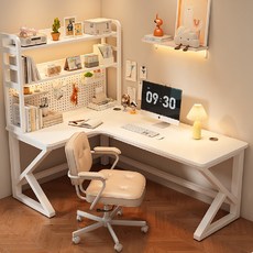 엣지모어 코너책상 ㄱ자 책상 다용도 사무용 L자 데스크 철제 컴퓨터 선반 타공판 서재 책장 공부책상, [왼쪽 코너형+책장] 화이트 120x180cm