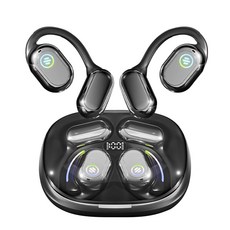 Heiz 오픈이어 귀걸이형 노이즈캔슬링 오픈형 무선 블루투스 5.4 골전도 이어폰, 블랙,1개