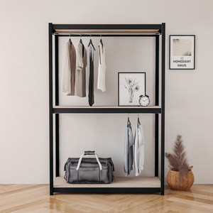 튼튼한 철제 구조로 제작된 프리미엄 드레스룸 시스템 행거로, 옷과 소품을 효율적으로 정리할 수 있으며 블랙 색상으로 세련된 공간 연출이 가능합니다.