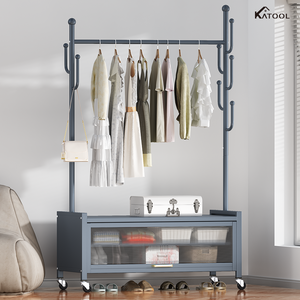 KATOOL 튼튼한 수납장 옷걸이 행거 다용도 스탠드 행거 튼튼한 철제 이동식 스탠드 선인장 수납장 행거, 프리미엄 그레이