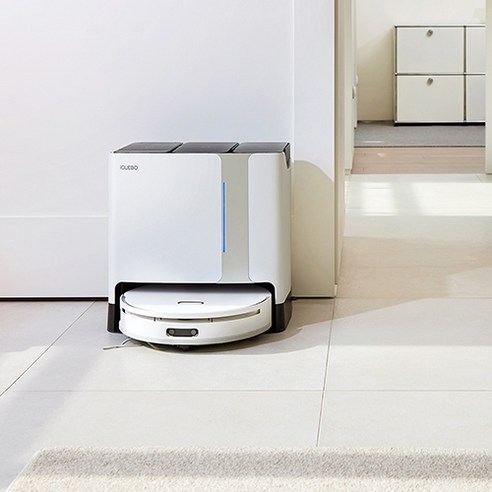 - OMNI 스테이션과 연동해 자동 먼지 비움, 물걸레 세척 및 열풍건조가 가능하다