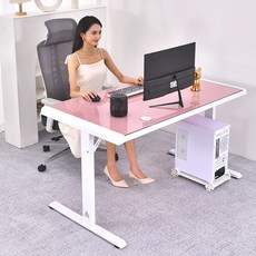 아우스 AUS 강화유리 컴퓨터책상 게이밍책상 컴퓨터테이블 학생책상 서재책상 사무용책상 1인용 2인용, 화이트+핑크