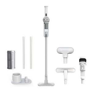 강력한 흡입력과 다양한 브러시 구성으로 바닥과 틈새, 침구 청소가 가능하며, 교체 롤러와 필터, 거치대까지 포함되어 편리하게 관리할 수 있는 무선 청소기입니다.