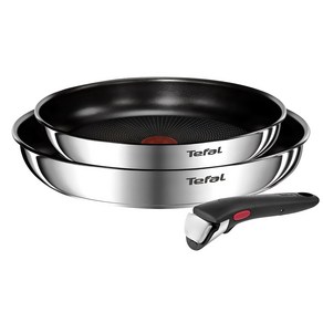 테팔 인덕션 매직핸즈 스테인리스 컬렉션 트라이미 프라이팬세트는 22cm, 26cm 프라이팬과 분리형 매직핸즈 손잡이로 구성되어 인덕션 및 가스레인지 모두 사용 가능하며, 스테인리스 스틸 소재로 내구성이 뛰어나고 세척이 용이하며 다양한 요리에 활용할 수 있는 실용적인 조리 도구 세트입니다.