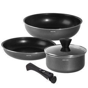 엔젤쿡 인덕션 멀티핸들 5종 세트는 18cm 냄비, 24cm 프라이팬, 28cm 궁중팬과 분리형 손잡이로 구성되어 인덕션과 가스레인지에서 모두 사용 가능하며, 공간 절약형 수납이 가능하고 내구성이 뛰어난 소재로 다양한 요리를 편리하게 조리할 수 있는 주방용 세트입니다.