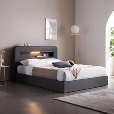 삼익가구 소노 LED 가죽 침대 프레임 단품, 그레이