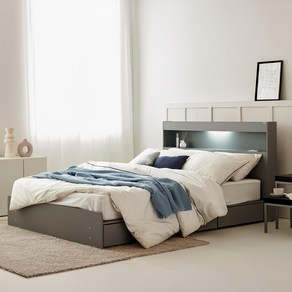 동서가구 이즈 카이 침대는 LED조명이 포함된 1단 3서랍 수납 구조로 실용적이며, 세련된 그레이 색상과 깔끔한 디자인으로 공간을 효율적으로 활용할 수 있는 프레임 단품 침대입니다.