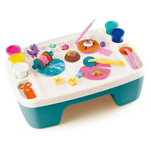 아이들이 다양한 색상의 클레이로 창의적 놀이를 즐길 수 있는 유아용 테이블 세트로, 넉넉한 용량과 도구 구성으로 역할 놀이와 소근육 발달을 동시에 지원한다.